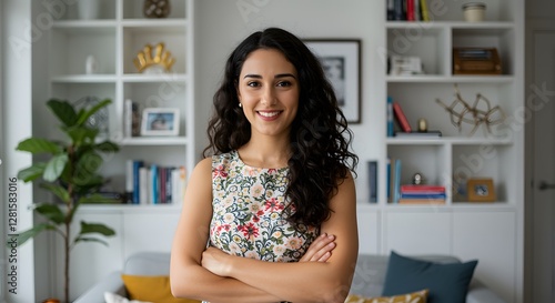 Confident Woman Smiling in a Stylish Home with Modern Decor