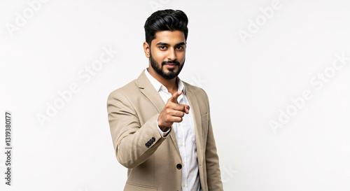 Confident Young Businessman Pointing in Studio Portrait
