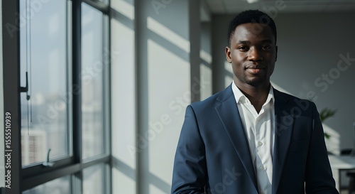 Confident Young Businessman Portrait Modern Office, Professional Success