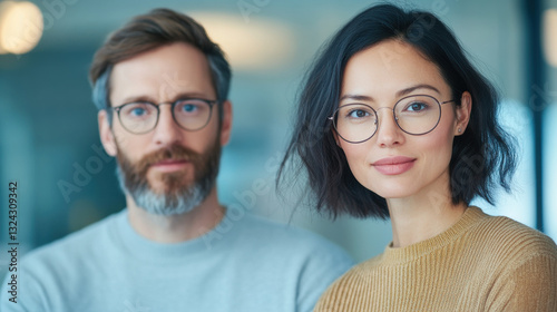 Confident Young Professionals with Modern Eyewear in Office Environment