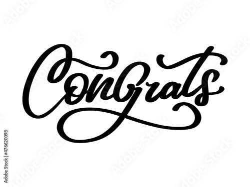 Congrats. Beautiful greeting card poster with calligraphy black text Word gold fireworks star. Hand drawn design elements. Handwritten modern brush lettering