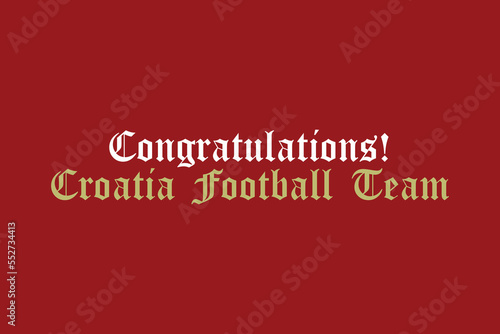 Congratulations Croatia football team Typography. The winning team in the tournament's match. International match qualify team. Qualification country. White and yellow text on a red background.