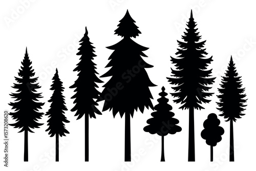 Conifer Tree Silhouette Collection – Black Pine Vector Elements on White Background
