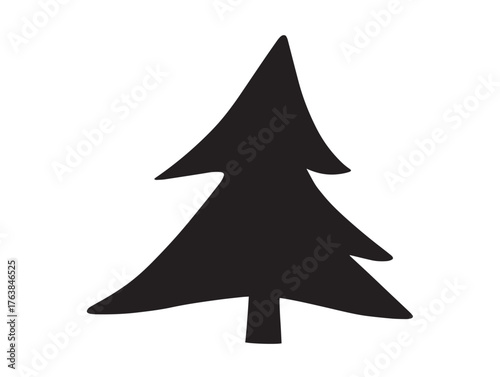 Coniferous pine tree silhouette vector line art illustration