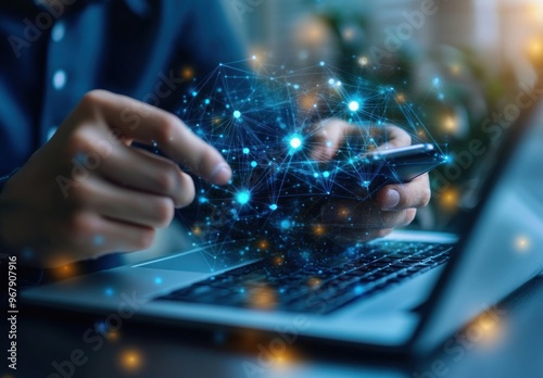 Connecting the Digital World: Hands Using a Smartphone