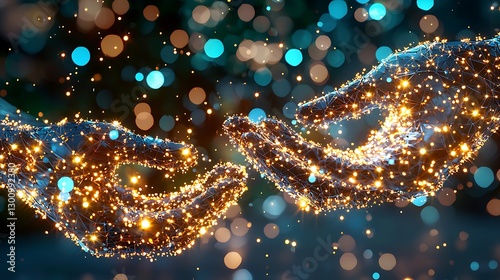 Connection of sparkling hands abstract setting digital artwork enchanting atmosphere close-up view unity concept