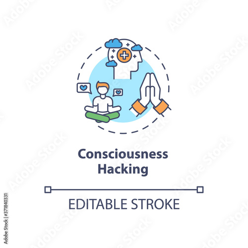 Consciousness hacking concept icon. Biohacking, spiritual growth idea thin line illustration. Meditation, mental health improvement. Vector isolated outline RGB color drawing. Editable stroke