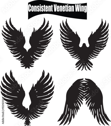 Consistent Venetian Wing Black Silhouette Vector Collection