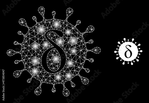Constellation mesh Delta covid virus web icon with glitter light spots. Illuminated constellation is created from Delta covid virus vector icon. Constellation carcass web polygonal Delta covid virus,
