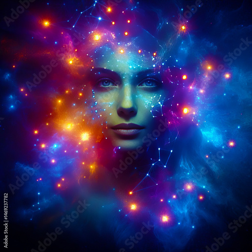 Constellation Muse Surreal Portrait - Star Woven Face & Nebula Art