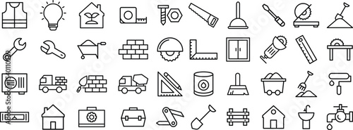 Construction and Tools Line Icons Set – Building, Maintenance, Equipment, and DIY Essentials