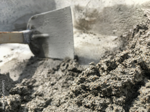 Construction concept, The mixing of stone, Cement, Sand together to make a strong concrete building