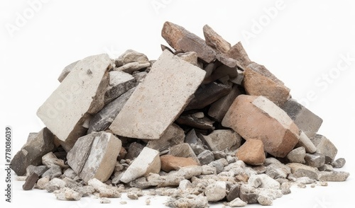 Construction debris from concrete, asphalt after the construction of the house isolated on white background.