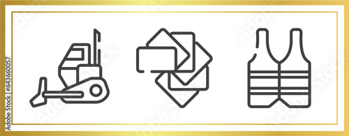 construction elements outline icons set. linear icons sheet included bulldozing, color pack, reflective vest vector.