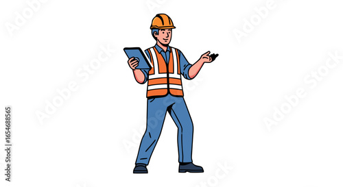 Construction engineer analyzing site plans with digital tablet and inspection tools showcasing modern infrastructure assessment practices