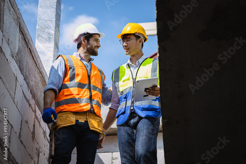Construction engineer discusses with architect at the construction site. or high-rise construction sites
