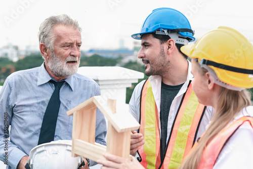 Construction Engineer Team Discussion Planing Work for Residential Estate Project, Engineering Teamwork Meeting Discuss About Building Architecture at Construction Site Together. Business Contractor