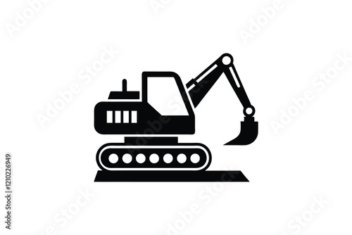 Construction excavator silhouette vector illustration isolated on a white background, heavy machinery