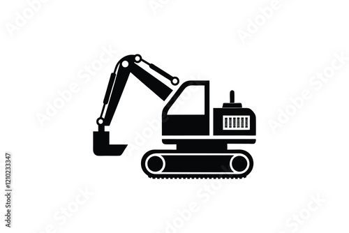 Construction excavator silhouette vector illustration isolated on a white background, heavy machinery