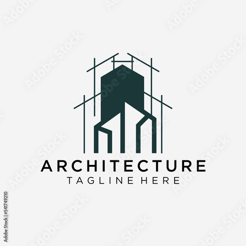 Construction logo in line art style, building, unique, Premium Vector