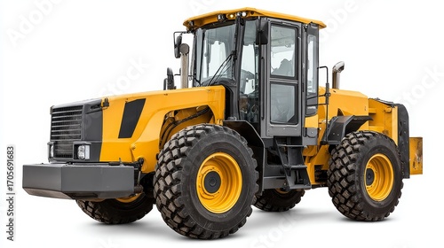 Construction machine loader lift in action at industrial site angled view of motor grader work environment