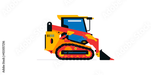 Construction machinery, compact excavator, loader, mini tractor. Commercial vehicles for work on the construction site. Vector illustration isolated on white background