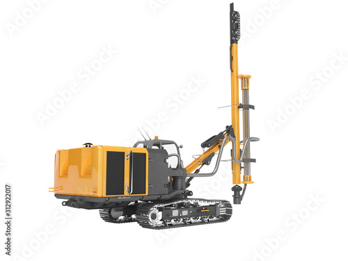 Construction machinery drilling crawler rotary rig orange 3D rendering on white background no shadow