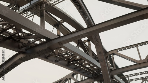 Construction of a highway overpass, close-up on structural steel, detailed and clear