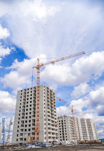Construction of new houses and large crane