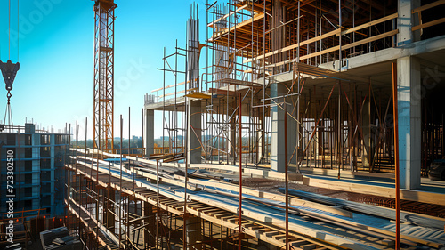 Construction Site Buzzing with Tower Cranes on a Clear Day