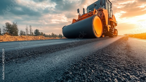 Construction site large orange road roller right side Two machines