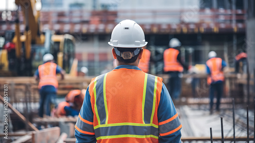 Construction Site Supervisor Overseeing Workers