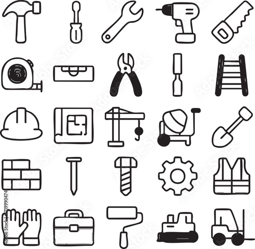 Construction tools and equipment icons set.