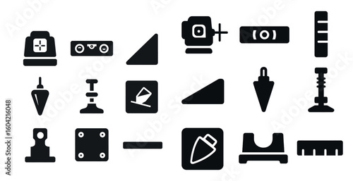 Construction tools silhouette icons set – flat, solid, building utilities graphics