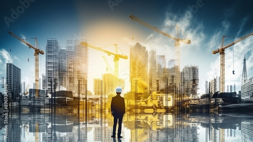 construction work and commercial real estate development, business background banner double exposure.