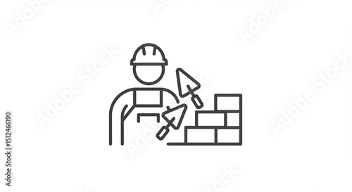 Construction worker builds brick wall facade construction site isolated outline