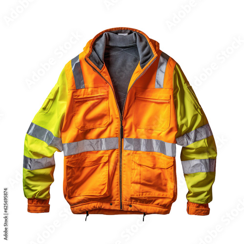 Construction Worker High-Visibility Jacket. isolated object, transparent background