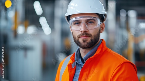 Construction Worker in Safety Gear at Industrial Site with Focused Expression