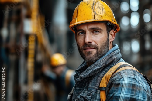 Construction worker in safety gear focuses on task at urban construction site during daylight hours