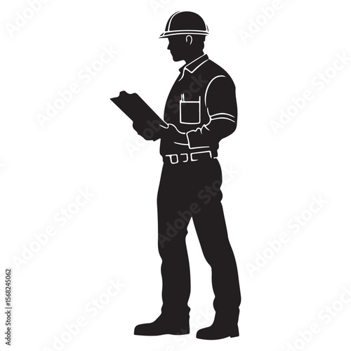 Construction Worker Inspector Silhouette Vector Illustration Clipboard Checklist