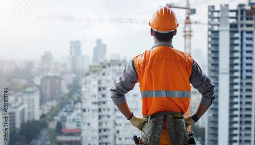 Construction Worker Observing Cityscape During Daytime Construction