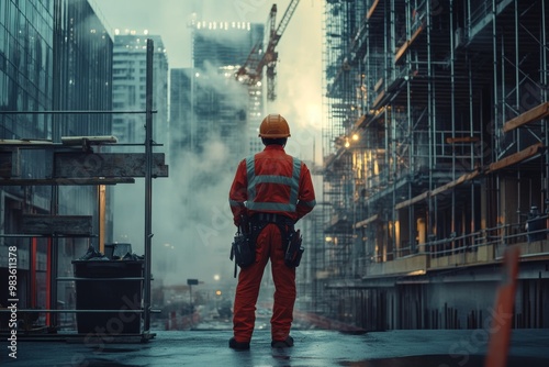 Construction Worker Observing Urban Development Scene