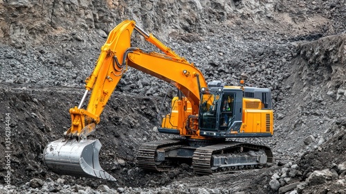 Construction worker operating excavator at a dig site heavy machinery work outdoor environment ground-level view