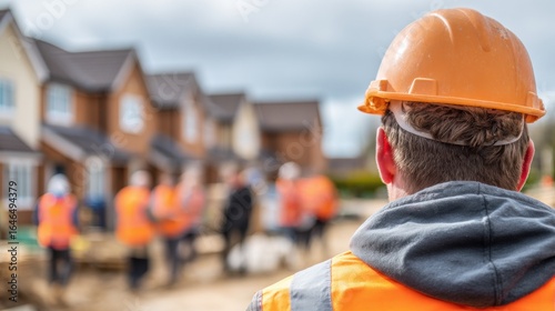Construction Worker Overseeing New Housing Development: Focus on Safety and Progress in Residential Building