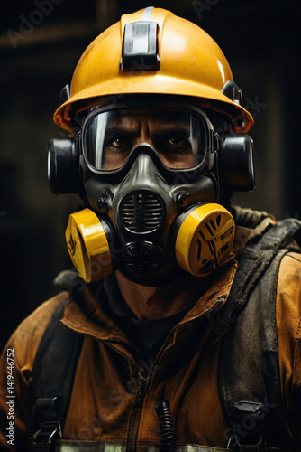 Construction Worker Safety Helmet Gas Mask Industrial Workplace Safety Generative AI