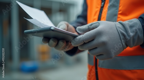 Construction Worker Using a Tablet on a Construction Site