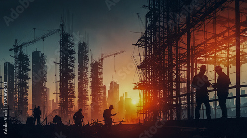 Construction Workers Amidst Urban Skyscraper Project