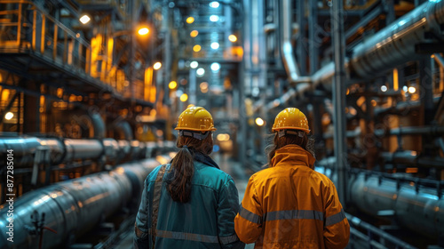 Construction workers collaborating to install large-scale industrial piping, ensuring accuracy and safety.