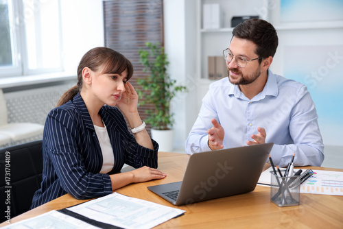 Consultant working with client at table in office. Business meeting
