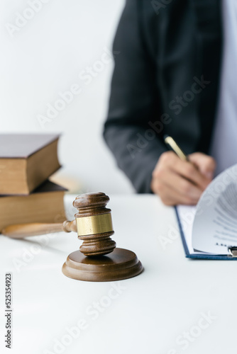 Consultation of Businesswoman and Male lawyer or judge counselor having team meeting with client, Law and Legal services concept.